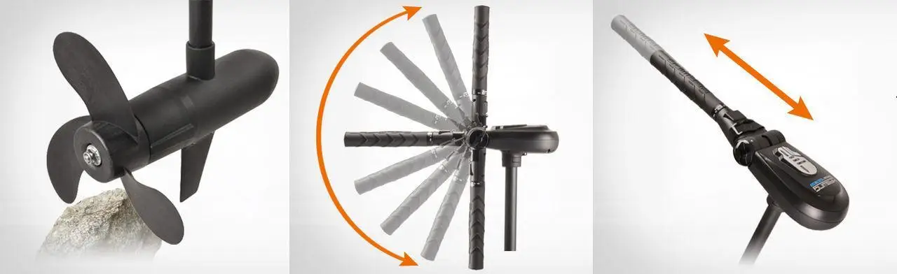 Мотор ефективно працює в умовах мілководдя завдяки можливості регулювання глибини занурення. Система швидкого замка дозволяє легко налаштувати оптимальне положення відносно дна.